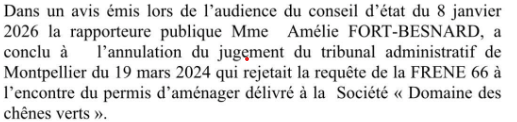 Janvier 2026 : Le conseil d’État met un grain de sable dans la mécanique de l’artificialisation des sols à Argelès-sur-Mer, celle du bois de la Sorèda où un un projet de lotissement est prévu par la municipalité depuis 2021.