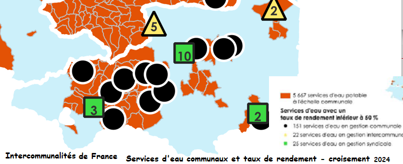 Un contexte hydrique déjà critique : L’Association des intercommunalités de France a publié en 2024 une carte des taux de rendement en eau potable dans les Pyrénées-Orientales. Résultat : la majorité des communes en aval (Haut-Conflent, Conflent, Roussillon-Conflent) affichent des taux ≤ 50 %. Les raisons ? Canaux défectueux ? difficultés d’entretien sur un territoire escarpé ? manque de moyens financiers pour les communes rurales… ? mais pas seulement ….Les années de sécheresse ont largement contribué à l’assèchement des cours d’eau.